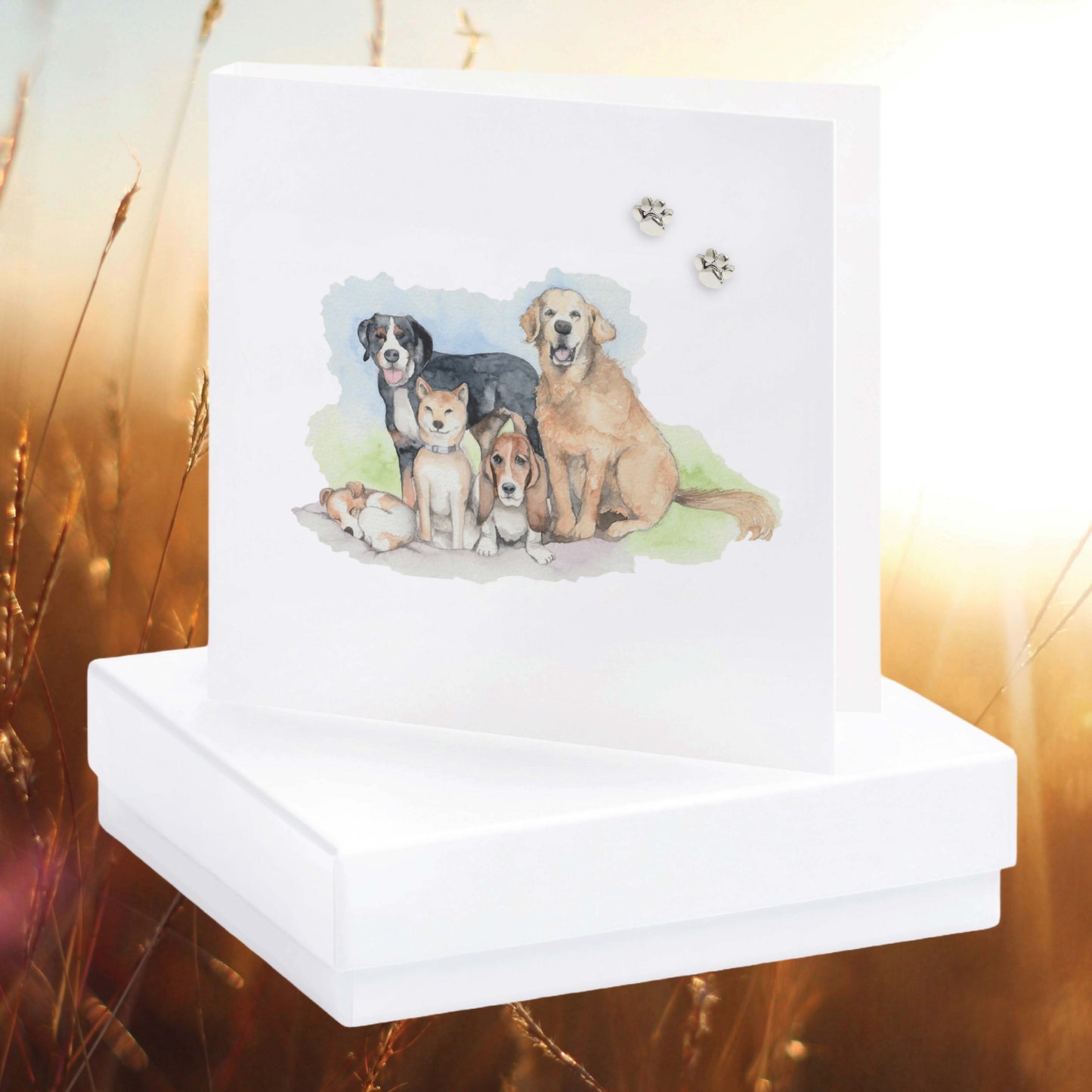 These adorable Dog Paw Sterling Silver Stud Earrings are the perfect gift for any dog lover. They come beautifully presented on a White Greeting Card measuring 85 x 85mm, which is made from FSC Certified 350 gsm paper that has been milled here in the UK. Each earring is hand finished with high-quality Sterling Silver and comes with butterfly backs for a secure fit. The inside of the card is blank, allowing you to add your own personal message.