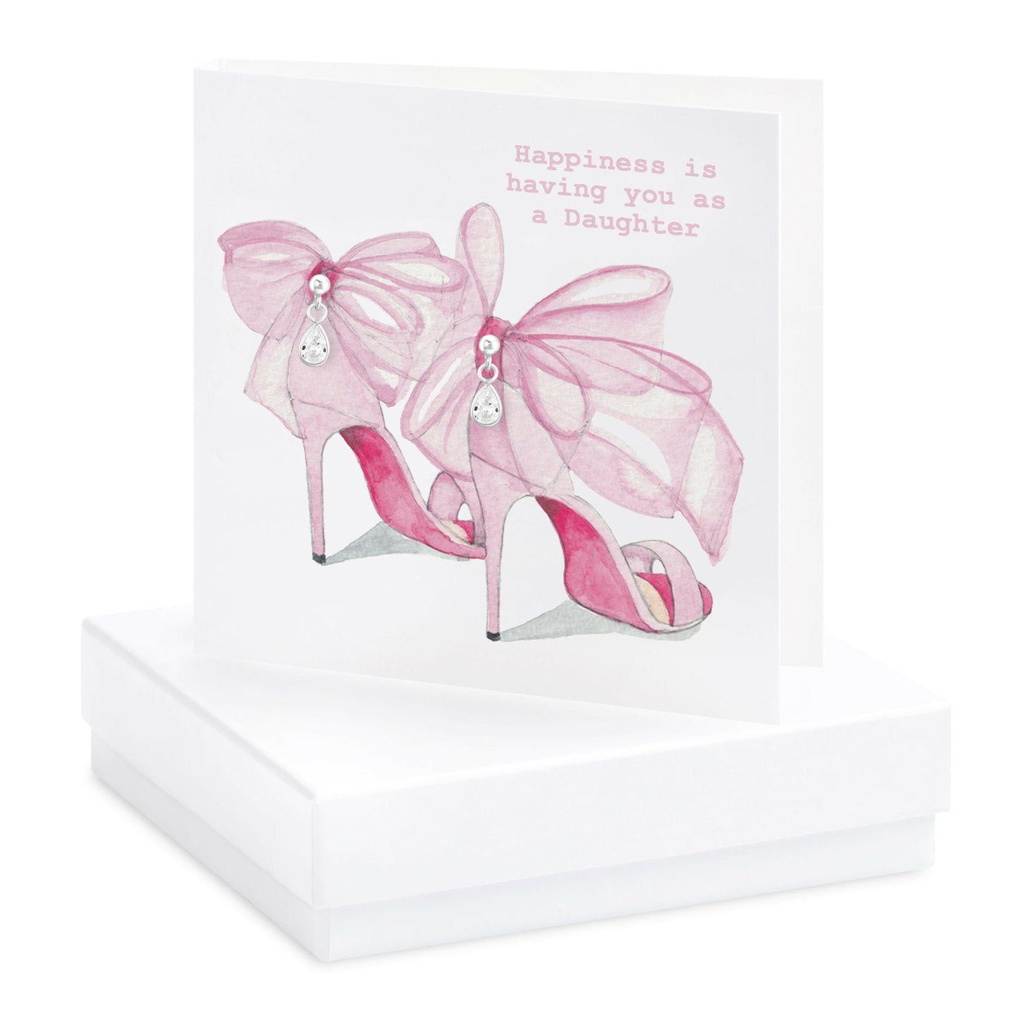 12. Tarjeta Pendiente Plata En Caja Lazo Rosa Zapatos Hija