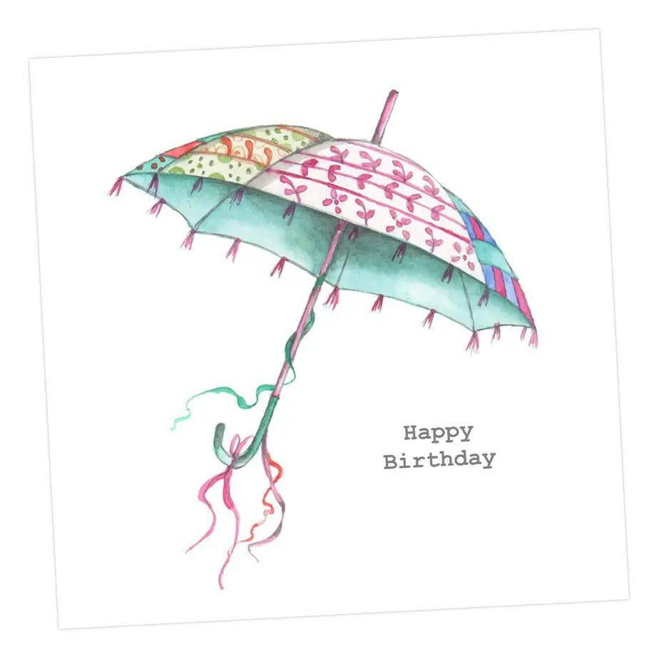Tarjeta Paraguas del feliz cumpleaños de Boho