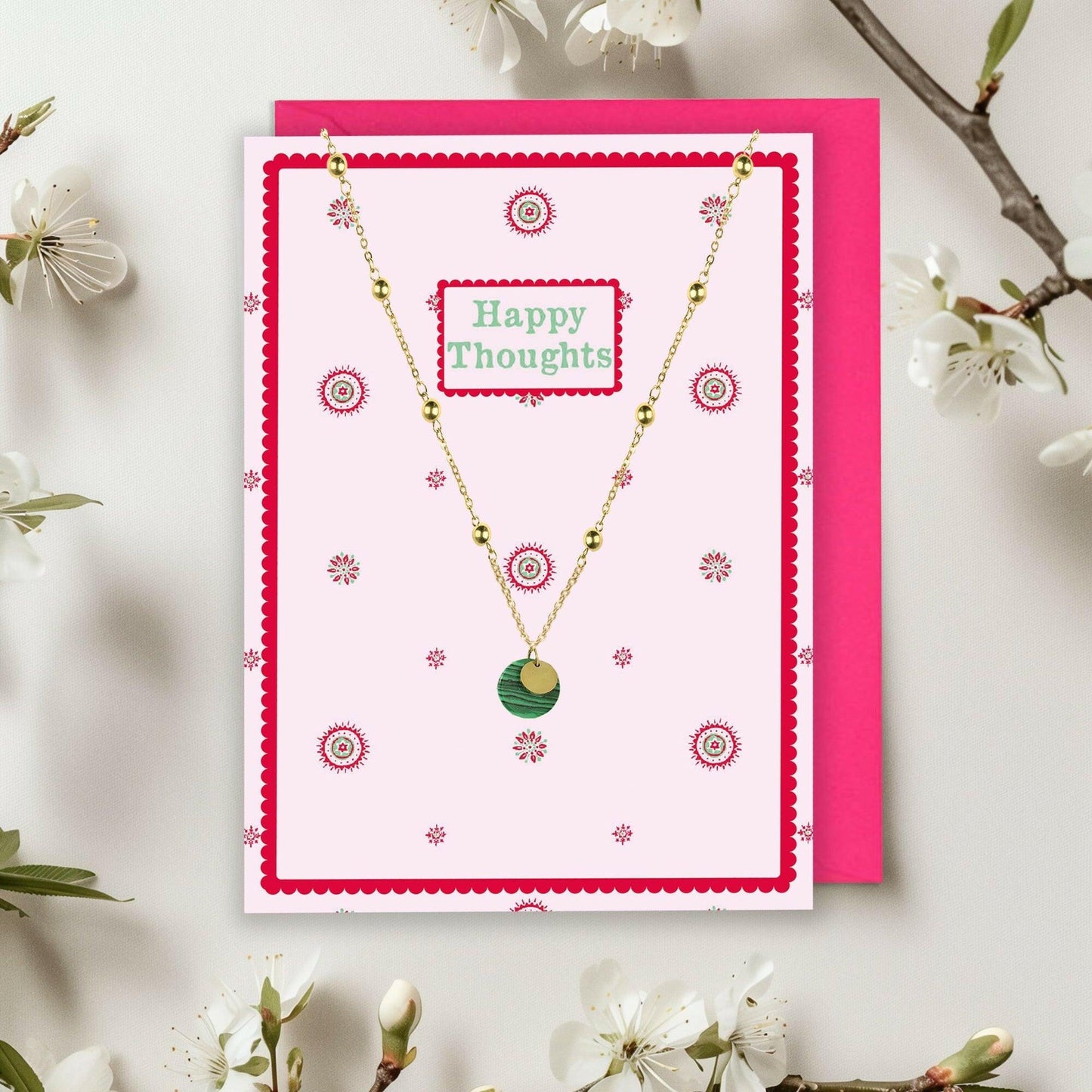 14. Gold Beaded Pendant Necklace and Happy Thoughts Card Gift Set - Crumble and Core