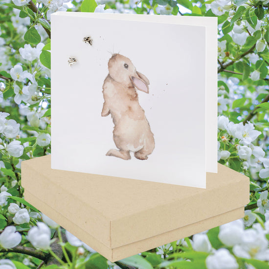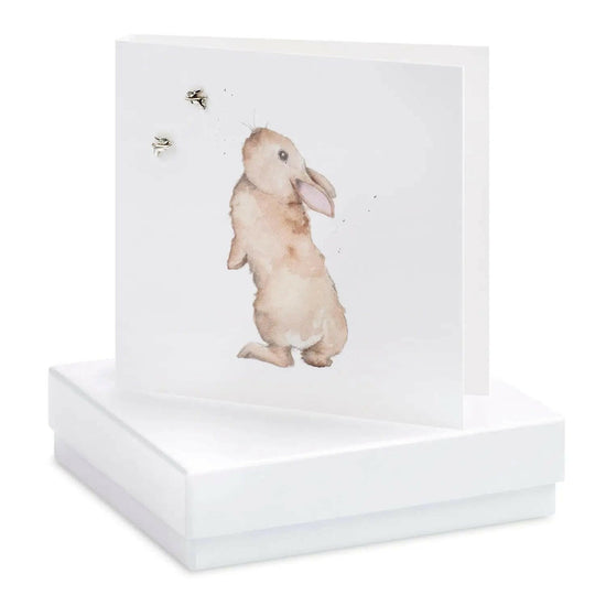 Sterling Silver Bunny Stud Earrings on Cute Gift Card - Boxed for Thoughtful Gifting