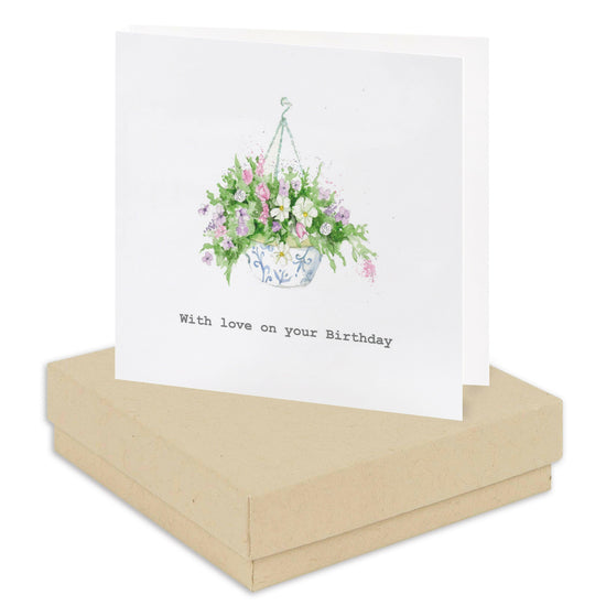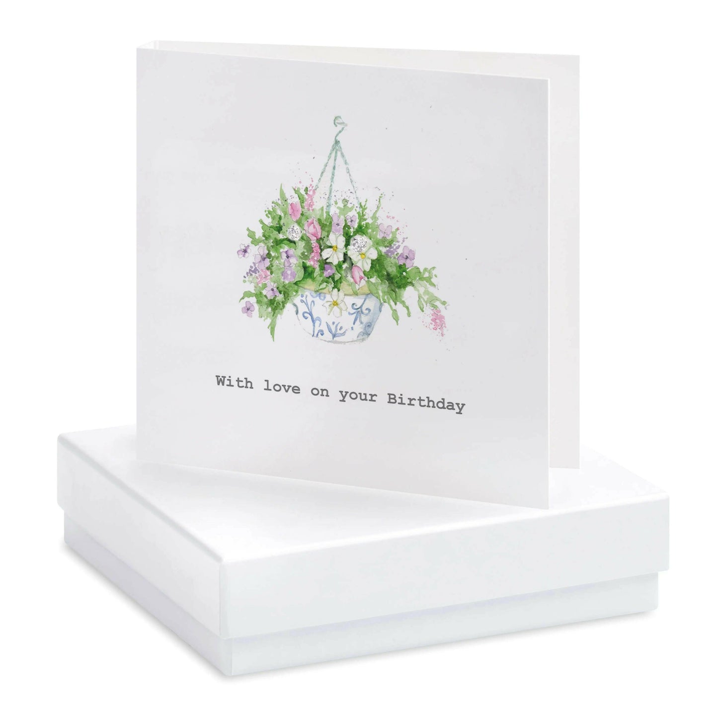 These beautiful Sterling Silver Stud Earrings feature a delicate hanging basket design that will make the perfect gift for a birthday celebration. The earrings are presented in a lovely white gift box and come with a complimentary birthday card, measuring 85 x 85mm, making it a complete package for your loved one. Expertly crafted from FSC certified 350 gsm paper, which is milled in the UK, the earrings are hand finished with stunning Sterling Silver jewellery and secured with butterfly backs for a secure and comfortable fit. The box measures 90mm x 90mm x 23mm and is available in both classic white or natural kraft brown, allowing for a personalised touch. This letterbox gift is perfect for easy delivery, as it can be sent as a Royal Mail Large Letter. We offer free delivery to Mainland UK and Northern Ireland, making it even easier for you to surprise someone special with this thoughtful and unique gift. The inside of the card is left blank for you to include a heartfelt message, making it a perfect customised gift for any occasion. Add a touch of elegance and beauty to your loved one's jewellery collection with these Sterling Silver Stud Earrings a gift they will treasure forever.