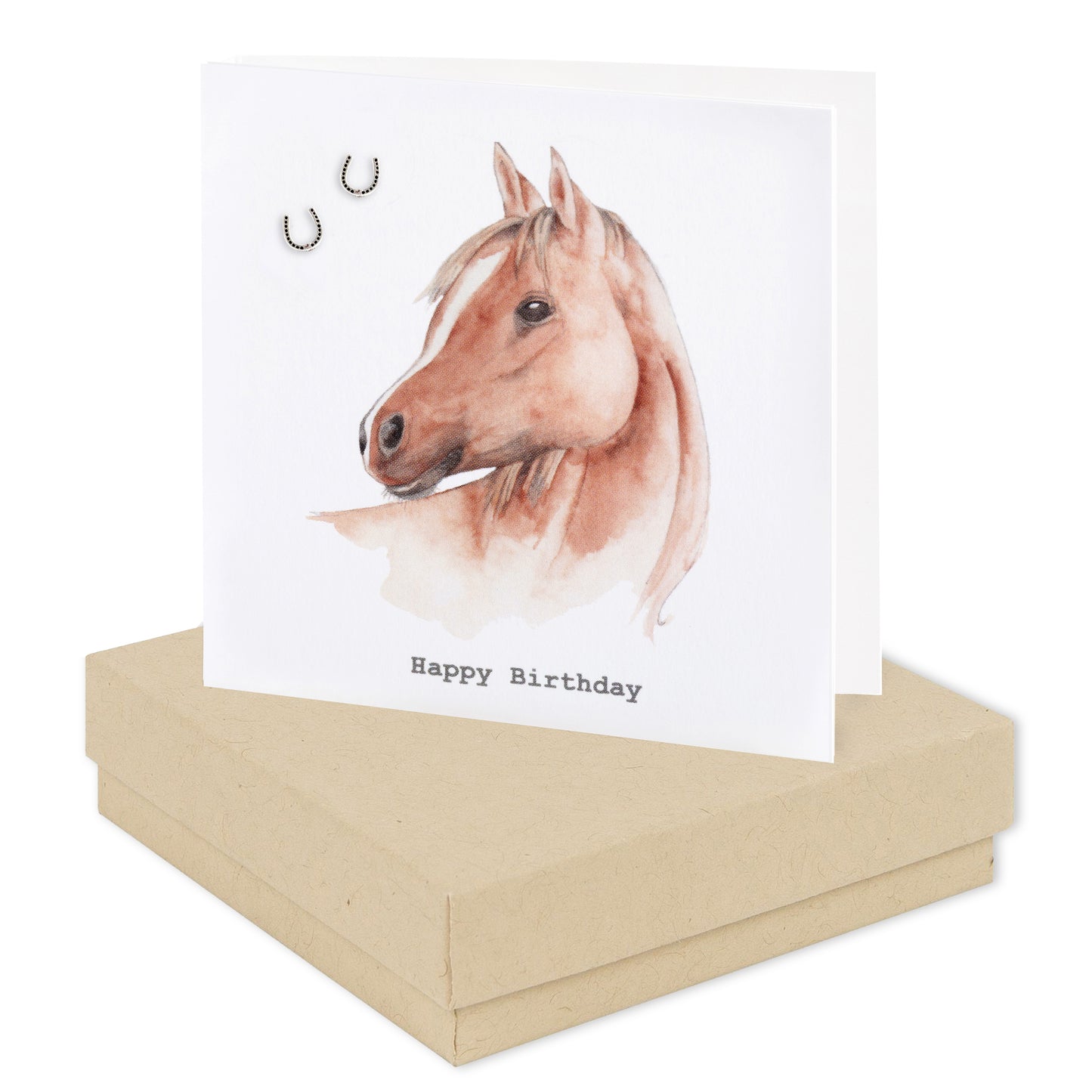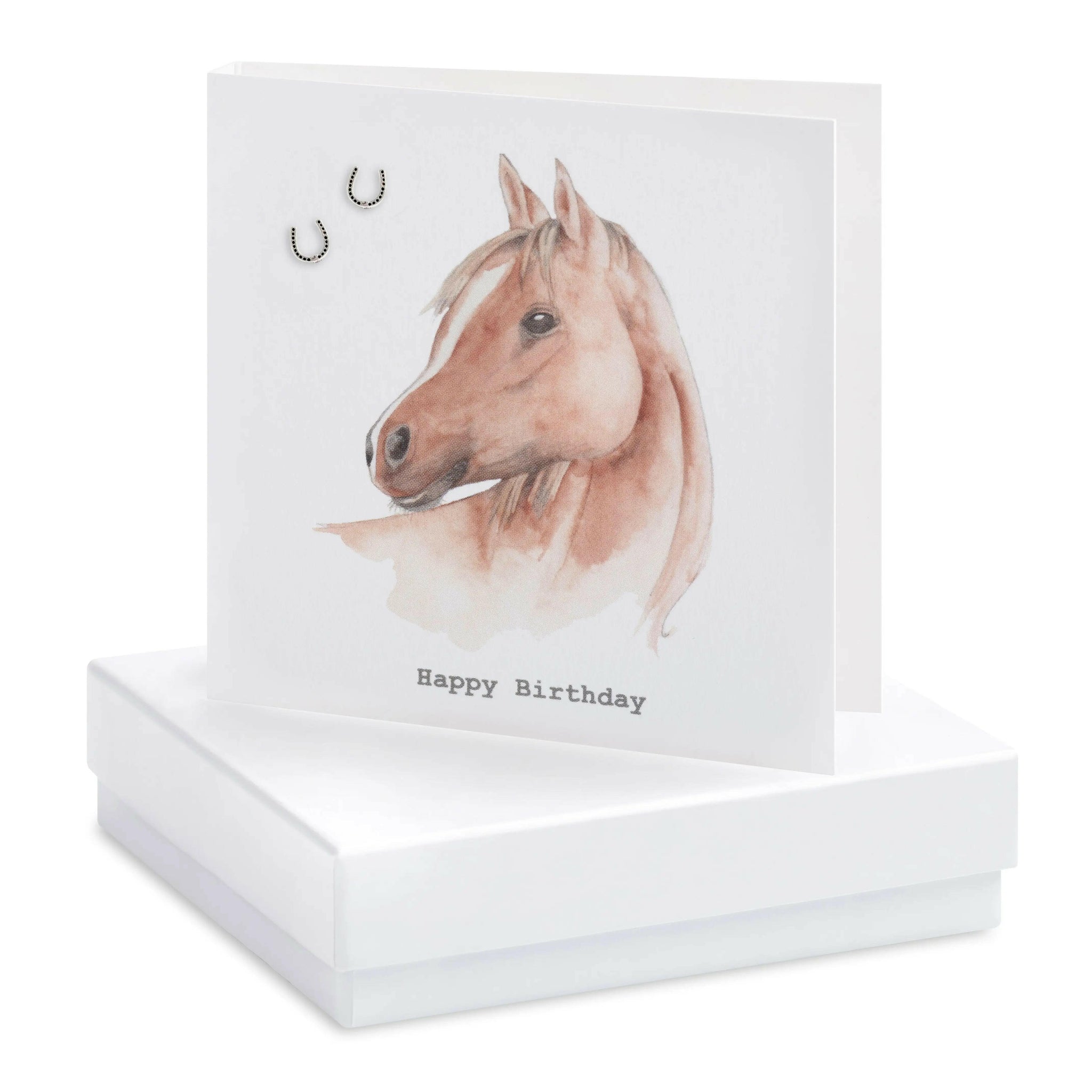 Add a touch of elegance to any outfit with these stunning Sterling Silver Horse Stud Earrings - the perfect birthday gift for any horse lover! These beautiful earrings come in a white gift box, measuring 90mm x 90mm x 23mm, making it the perfect size for gifting. Add a personal touch by including a heartfelt message on the blank interior of the included white greeting card, measuring 85 x 85mm. The card is made from FSC Certified 350 gsm paper, milled right here in the UK. Each earring is hand finished with delicate sterling silver and features butterfly backs for secure and comfortable wear. These earrings are not only stylish, but also environmentally friendly and ethically made. Make someone's birthday unforgettable with these stunning Sterling Silver Horse Stud Earrings. And with our letterbox gift option, your package will conveniently fit in a Royal Mail Large Letter. Shop with confidence knowing that your purchase is not just a gift, but also a responsible choice.