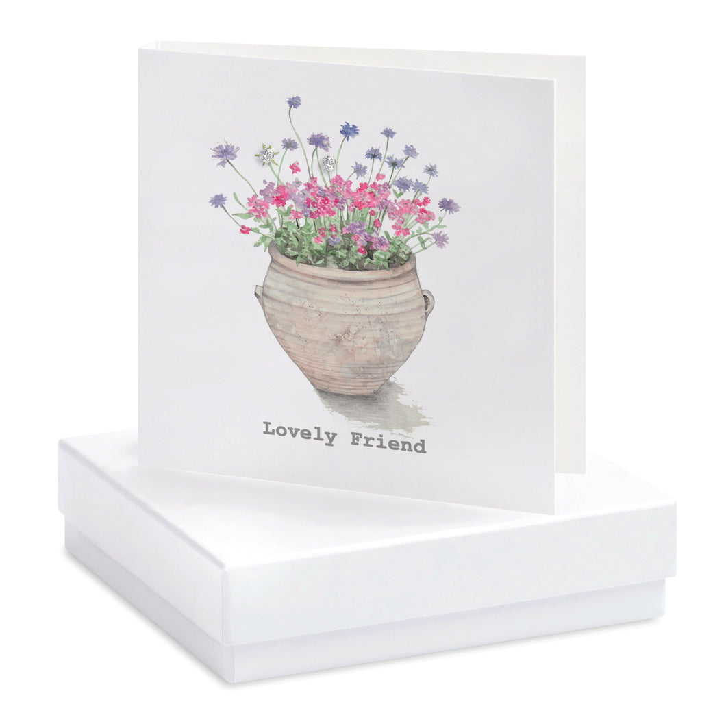 This beautifully designed Sterling Silver Stud Earring Card is the perfect gift for your special friend. Measuring 85 x 85mm, it features a stunning FSC Certified 350 gsm paper that is milled right here in the UK for exceptional quality. Each card is hand finished with a pair of Sterling Silver earrings and delicate butterfly backs. The blank interior allows you to add your own personal message, making it a thoughtful and heartfelt gift for any occasion.
