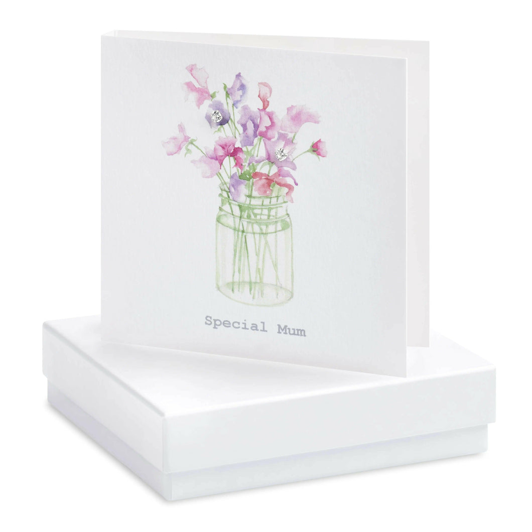 Surprise your special mum with these stunning Sterling Silver Stud Earrings, presented on a beautiful boxed Sweet Pea Design Special Mum card. It's the perfect gift for Mother's day or any special occasion.