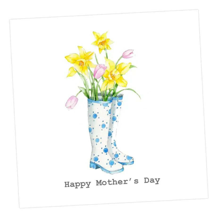 Dotty Spring Wellies Greeting Card