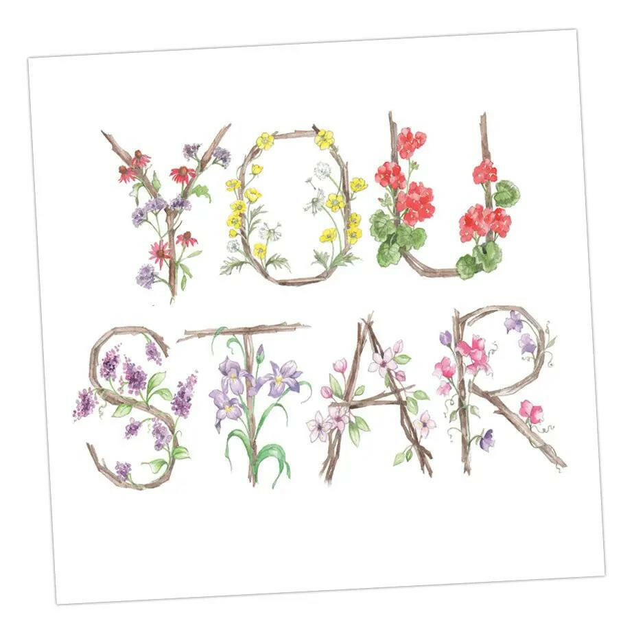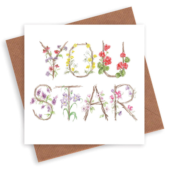 Floral Letter Alphabet Congratulations Card - You Star Design for Celebrations