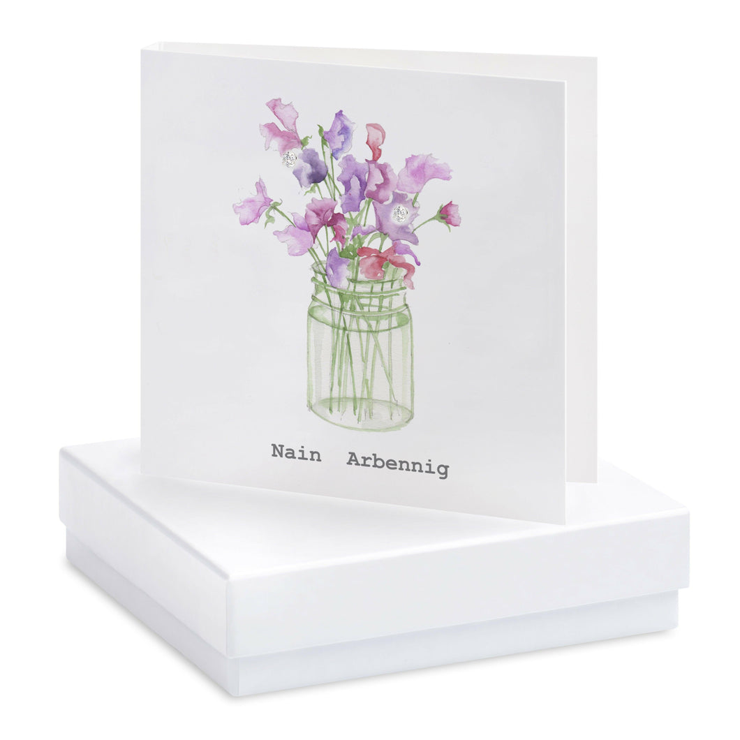 Sterling Silver Stud Earrings on Hand Finished Welsh Gift Card for Grandmas - Nain Arbenning Special Gift